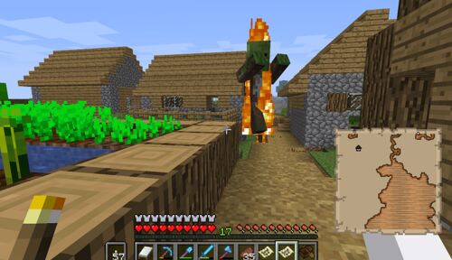 【バージョン1.13.1 / バニラ / サバイバル】 前回奪われた船を作り直して、ひきつづき「森の洋館」探しをしています。 帰りのためになんとなく拠点周りの地図を持ってきているのですが、 自分を示す白丸すら表示されていません。 かなり遠くまで来たんです…