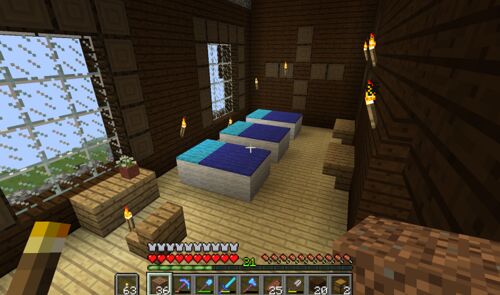【バージョン1.13.2 / バニラ / サバイバル】 前々回と前回に引き続き、「森の洋館」の部屋を探索していきますよ。 今回は3階です。 1.大きな寝室 2.猫の像の部屋 3.ダイニング小 4.中くらいの寝室 隠し部屋はなさそうです。 屋根の上にものぼって…