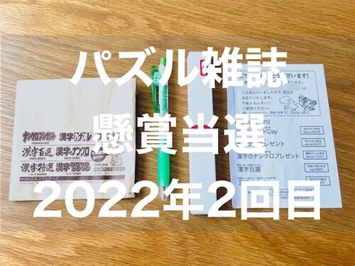 ワークスのパズル雑誌「漢字館」シリーズの懸賞に当たりました。パズル雑誌での当選は今回が2度目です。